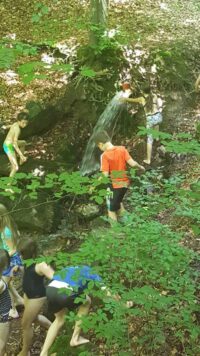 Wir haben als Erstes mal gestaunt, weil es 2 Gummifußballplätze gab und einen Volleyballplatz. Wir haben meistens nur Fußball gespielt. Wir haben eine Nachtwanderung gemacht zur Wildfrauhöhle. Die Geschichte sagt, dass die weiße Gestalt im Wald rumläuft. Alle haben gesagt, dass sie eine böse Hexe ist, aber das hat nicht gestimmt. Sie wurde nur so, weil ihre Tochter entführt wurde. Dann sind wir zurückgegangen und sind ins Bett gegangen. Wir haben am nächsten Tag ein Spiel mit dem Zimmer gespielt: Die verflixte Jagd nach der 49.Lukas S.
