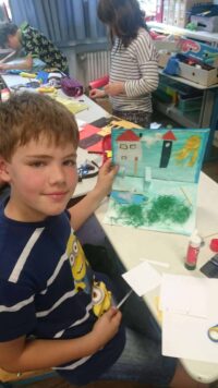 Im Kunstunterricht bekam jeder von uns per Los eine eigene Szene der Zauberflöte zugeteilt. Mit viel Phantasie und den verschiedensten Materialien stellen wir Pop-Ups (Aufklappbilder) zu diesen Szenen her. Vor den Sommerferien wollen wir diese Pop-Ups im unteren Flur ausstellen und würden uns über viele Betrachter freuen.