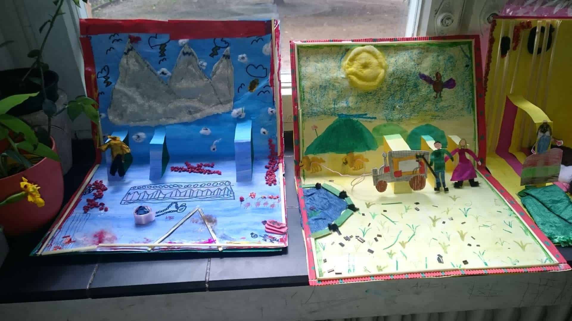 Unsere Pop-Ups sind zur Zeit auf den Fensterbänken im Untergeschoss ausgestellt und werden im kommenden Schuljahr einen neuen Platz in der Schule bekommen.