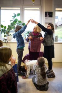 Bei einem der letzten Treffen sind die Fotos entstanden. Zum Thema Märchen haben wir in Gruppen Standbilder gebaut, also einzelne Szenen aus bekannten Märchen dargestellt. Die anderen durften dann raten, welches Märchen und welche Stelle aus dem Märchen gemeint war. Danach gab es wie immer noch ein gemütliches Beisammensein, wobei wir auch gemeinsam Märchen gelesen haben.