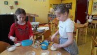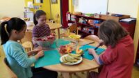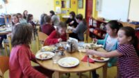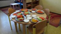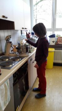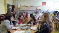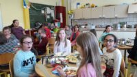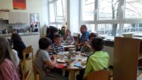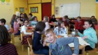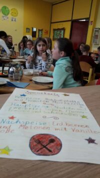 Am 29.04.2017 war es nach einigen Vorbesprechungen dann endlich so weit. Die erste Gruppe Kochkinder (Mina, Judith, Yuki, Andreea, Caroline und Anatol) ging gemeinsam mit Barbara an den Start, um im Kindercafé für den Rest der Klasse ein leckeres 3-Gänge-Menü zu kochen.