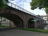 Dann ging es über die Saar Richtung Schloss. An der Schlossmauer ist die Fratze des „Geizigen Bäckers“ angebracht, und Diana erzählte uns die dazugehörende Geschichte. Gott sei Dank hängt die Fratze hoch – niemand musste seine Hand in den Mund stecken.