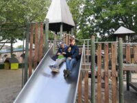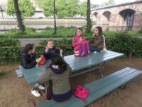 Die Bedeutung der abgesägten Birkenstämme machte uns sehr betroffen. Am Spielplatz unter der alten Brücke legten wir dann eine Frühstückspause ein.