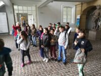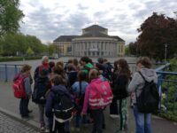 Am Schloss erfreute Jonas seine Mitschülerinnen und Mitschüler mit einer kompletten Geschichte des Schlosses und seiner Gestaltungsmerkmale. Erweitert und vertieft wurde es durch eine Videoinstallation im Eingangsbereich des Schlosses.