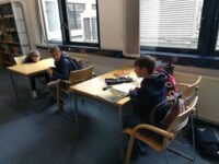 Über die alte Brücke ging es am Theater vorbei auf den St. Johanner Markt. Nach so vielen Eindrücken brauchten wir eine körperliche Stärkung – ein Eis schien uns das Mittel der Wahl, um mit kühlem Kopf in die Stadtbücherei zu gehen. Dort fanden wir zahlreiche Bücher über das Saarland (und natürlich andere), sodass wir problemlos eine Stunde dort verbringen konnten. Großes Lob an die Kinder, die sich in der Bibliothek vorbildlich verhielten.