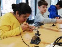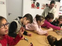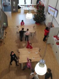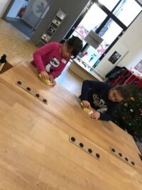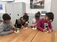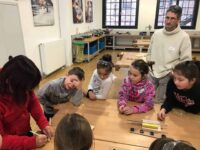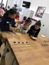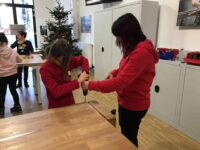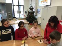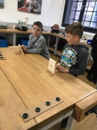In der Wissenswerkstatt wurden zwei Gruppen eingeteilt. Unten haben wir was mit Magneten gemacht und oben einen Ventilator gebaut. Es gab zwischendrin eine kurze Pause.