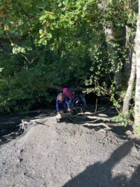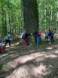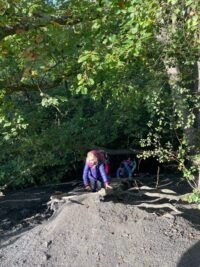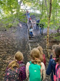 Wir sind zum Wald bis zum Heinrichshausweg gewandert. Dort haben wir zunächst gefrühstückt. Danach kam Silke, die „Urwaldführerin“ und wir sind auf den „Kleinen Fuji“ gegangen. Dort ist ein Kuscheltier hinuntergerollt. Als wir wieder runtergestiegen waren, lag es dort. Kurze Zeit später haben wir gemeinsam ein Ballspiel gespielt. Daraufhin sind wir einen Abhang hochgeklettert. Nun haben wir uns von Silke verabschiedet. Wir kamen wieder an der Schule an. Schließlich wurden wir abgeholt. Helena Schuh