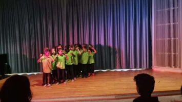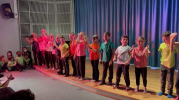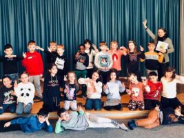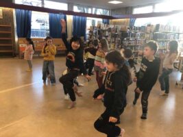 Die Affenklasse bearbeitete das Buch „Freunde“. Mit Worten und Gefühlen, die Freunde ausmachen, setzten sich die Kinder tänzerisch auseinander. Gemeinsam erlernten sie Bewegungssequenzen und haben diese zu einem relevanten Tanzstück zusammengefügt.