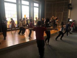 Diese Themen wurden in gelernten und auch von den Kindern selbst erdachten Choreografien verarbeitet. Sie haben sich gemeinsam bewegt und improvisiert. So sind spielerisch ganz persönliche Szenen entstanden, die zu einem Tanzstück zusammen kamen.