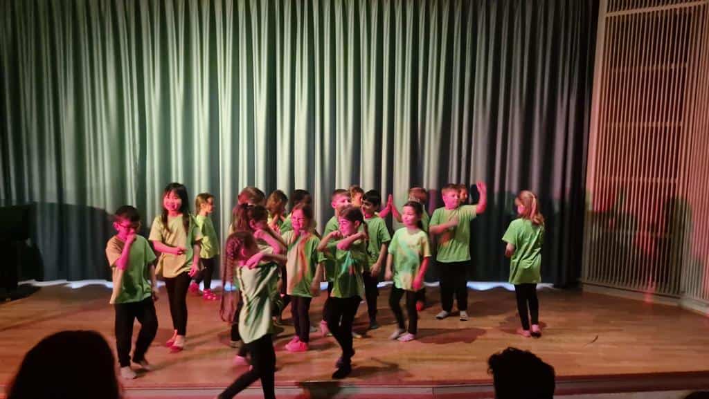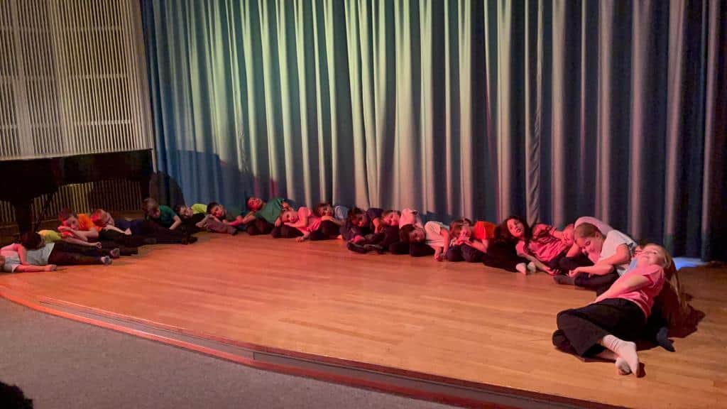 Die Affenklasse bearbeitete das Buch „Freunde“. Mit Worten und Gefühlen, die Freunde ausmachen, setzten sich die Kinder tänzerisch auseinander. Gemeinsam erlernten sie Bewegungssequenzen und haben diese zu einem relevanten Tanzstück zusammengefügt.