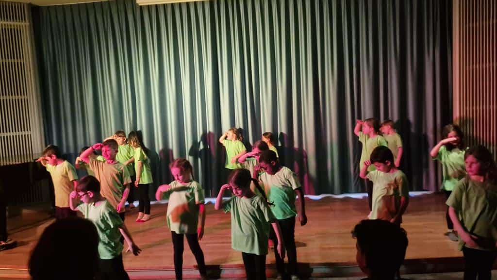 Diese Themen wurden in gelernten und auch von den Kindern selbst erdachten Choreografien verarbeitet. Sie haben sich gemeinsam bewegt und improvisiert. So sind spielerisch ganz persönliche Szenen entstanden, die zu einem Tanzstück zusammen kamen.