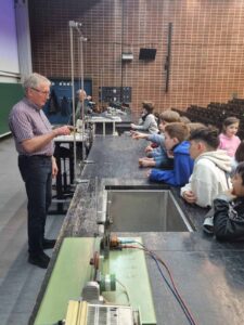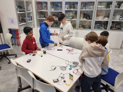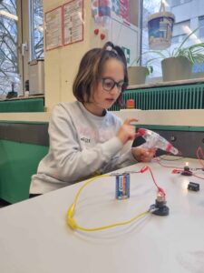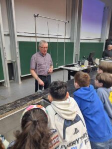 Am 19.01.26 besuchte die Klasse 4.1 aus der Ganztagsgrundschule am Rastpfuhl die Universität des Saarlandes. Sie trafen sich um 7:45 Uhr im Klassenzimmer. Um 8:03 Uhr gingen sie zur Saarbahn-Haltestelle. Dann nahmen sie eine Saarbahn zum Hauptbahnhof. Dort stiegen sie um in einen Bus mit der Nummer 124 zum Uni-Campus. Danach liefen sie 5-8 min bis zum Physik-Abteil der Naturwissenschaften. Die Klasse spielte und frühstückte vorm Gebäude des Physik-Abteils .Danach rief eine Lehrerin die Kinder rein. Sie hingen ihre Sachen weg und gingen ins GOFEX Labor. Im GOFEX Labor schrieben sie sich Namenschilder und setzten sich in einen großen Sitzkreis. Dann stellten die Betreuer sich vor und sie redeten über das Thema „Elektrizität“. Dann gaben sie der Klasse die Aufgabe: „Bringe eine Glühbirne zum Leuchten!“ Darauf bekamen sie die Anforderung, keine Steckdosen zu benutzen. Daraufhin holten sich die Kinder Batterien, Kabel, Glühbirnen und dann noch eine kleine Halterung für die Glühbirnen, die hieß „Fassung“. Die erste Glühbirne brachten zwei Jungen und ein Mädchen zum Leuchten. Es wurden sieben Glühbirnen zum Leuchten gebracht. Das war der Klassenrekord. Dann wurden sie in den Sitzkreis gerufen und es wurde gesagt, dass die Klasse eine kleine Pause machen soll. In der Pause gingen die Kinder in einen Hörsaal, in dem Studenten und Studentinnen gerade arbeiteten. Danach gingen sie in einen noch größeren Hörsaal. Dort erklärte ihnen der Professor etwas über Gewichte und Pendel. Dann durften die Kinder wieder rein, denn sie hatten eine lange Pause gehabt. Dann setzten sie sich wieder in den Sitzkreis und bekamen kleine Kärtchen mit Ideen darauf. Danach stellten sie fest, dass sie nicht mehr so viel Zeit haben und besprachen, dass sie ihre Experimente bald vorstellen sollen. Es wurde viel experimentiert und die Ergebnisse vorgestellt. Zum Schluss räumten sie alles wieder auf und setzten sich wieder in den Sitzkreis. Da kam ein Betreuer und hatte ein Gerät in der Hand, das Strom durch den menschlichen Körper leitete. Die Kinder bildeten einen Stromkreis mit ihren Körpern, wodurch das kleine Gerät anfing zu leuchten. Danach fuhren sie mit dem Bus und der Saarbahn zurück zur Schule.