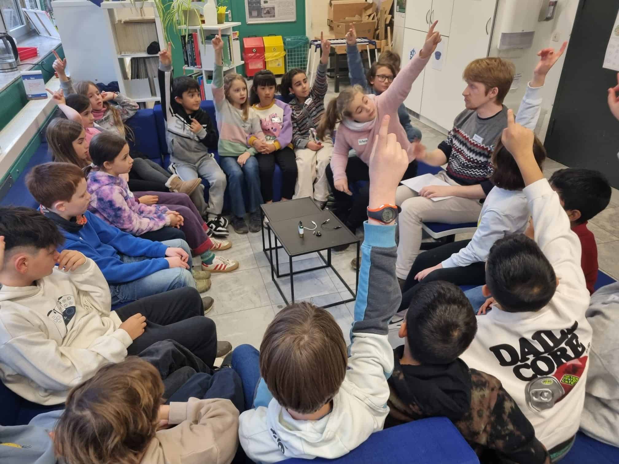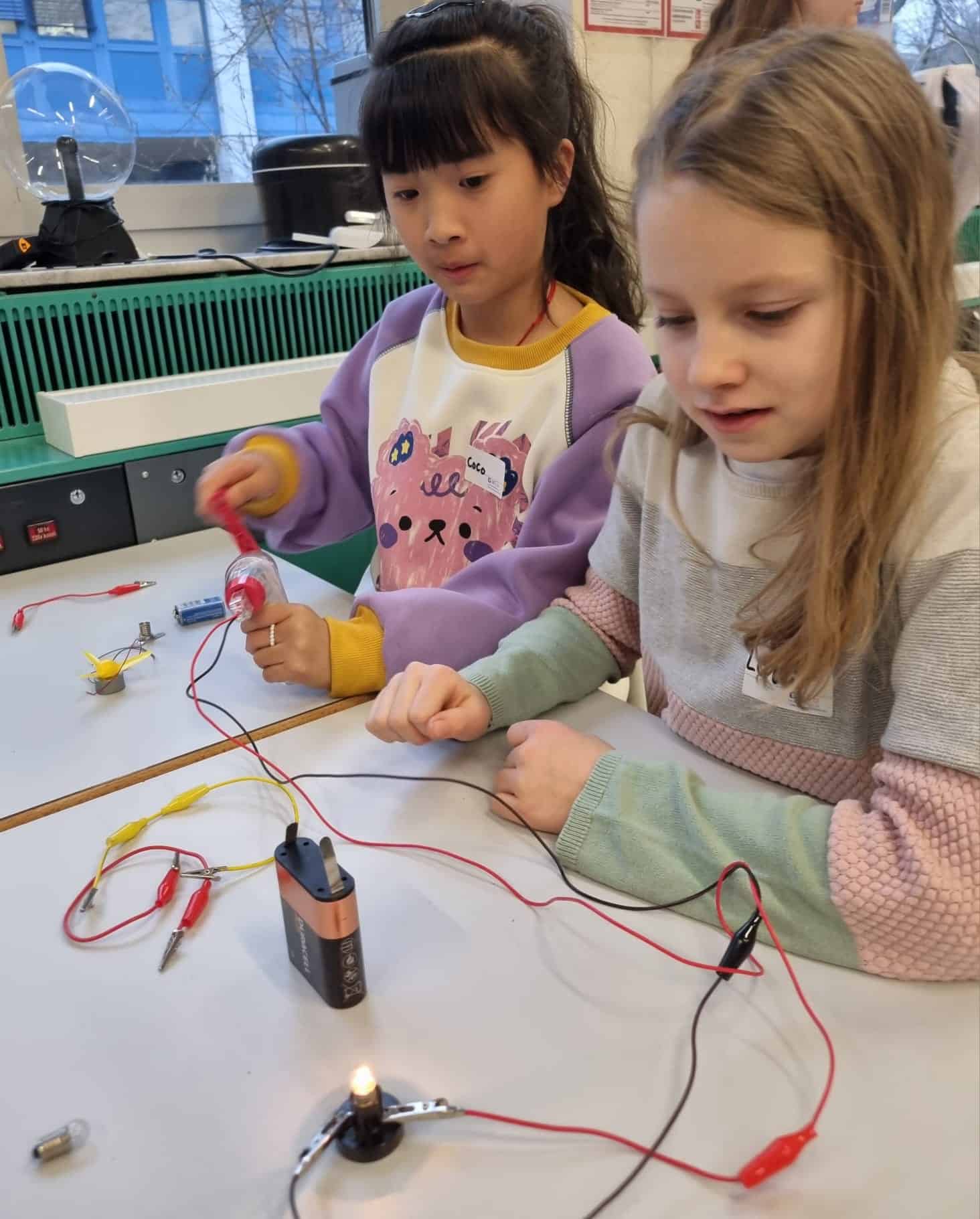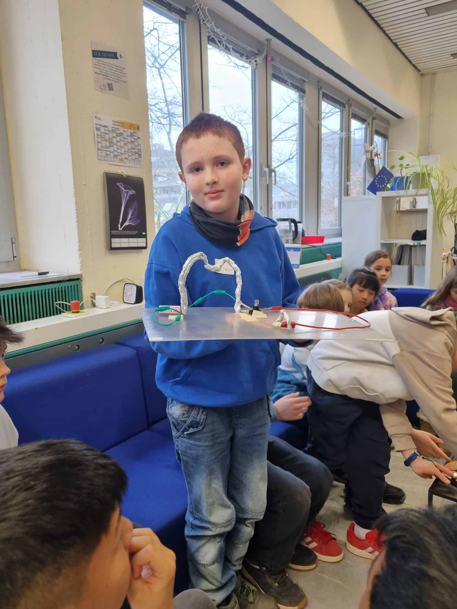 Am 19.01.26 besuchte die Klasse 4.1 aus der Ganztagsgrundschule am Rastpfuhl die Universität des Saarlandes. Sie trafen sich um 7:45 Uhr im Klassenzimmer. Um 8:03 Uhr gingen sie zur Saarbahn-Haltestelle. Dann nahmen sie eine Saarbahn zum Hauptbahnhof. Dort stiegen sie um in einen Bus mit der Nummer 124 zum Uni-Campus. Danach liefen sie 5-8 min bis zum Physik-Abteil der Naturwissenschaften. Die Klasse spielte und frühstückte vorm Gebäude des Physik-Abteils .Danach rief eine Lehrerin die Kinder rein. Sie hingen ihre Sachen weg und gingen ins GOFEX Labor. Im GOFEX Labor schrieben sie sich Namenschilder und setzten sich in einen großen Sitzkreis. Dann stellten die Betreuer sich vor und sie redeten über das Thema „Elektrizität“. Dann gaben sie der Klasse die Aufgabe: „Bringe eine Glühbirne zum Leuchten!“ Darauf bekamen sie die Anforderung, keine Steckdosen zu benutzen. Daraufhin holten sich die Kinder Batterien, Kabel, Glühbirnen und dann noch eine kleine Halterung für die Glühbirnen, die hieß „Fassung“. Die erste Glühbirne brachten zwei Jungen und ein Mädchen zum Leuchten. Es wurden sieben Glühbirnen zum Leuchten gebracht. Das war der Klassenrekord. Dann wurden sie in den Sitzkreis gerufen und es wurde gesagt, dass die Klasse eine kleine Pause machen soll. In der Pause gingen die Kinder in einen Hörsaal, in dem Studenten und Studentinnen gerade arbeiteten. Danach gingen sie in einen noch größeren Hörsaal. Dort erklärte ihnen der Professor etwas über Gewichte und Pendel. Dann durften die Kinder wieder rein, denn sie hatten eine lange Pause gehabt. Dann setzten sie sich wieder in den Sitzkreis und bekamen kleine Kärtchen mit Ideen darauf. Danach stellten sie fest, dass sie nicht mehr so viel Zeit haben und besprachen, dass sie ihre Experimente bald vorstellen sollen. Es wurde viel experimentiert und die Ergebnisse vorgestellt. Zum Schluss räumten sie alles wieder auf und setzten sich wieder in den Sitzkreis. Da kam ein Betreuer und hatte ein Gerät in der Hand, das Strom durch den menschlichen Körper leitete. Die Kinder bildeten einen Stromkreis mit ihren Körpern, wodurch das kleine Gerät anfing zu leuchten. Danach fuhren sie mit dem Bus und der Saarbahn zurück zur Schule.